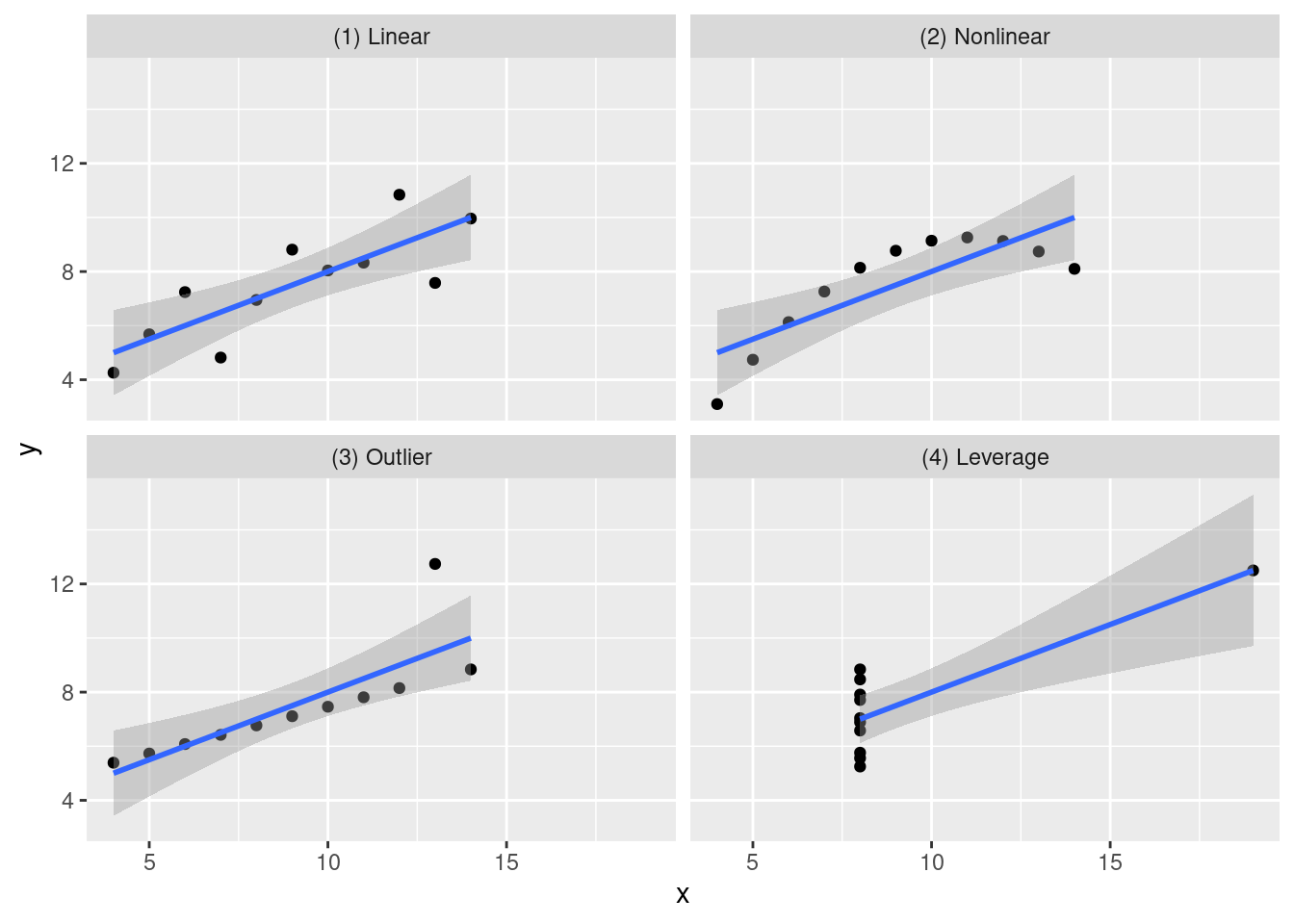 Quick history lesson. In 1973 (before the invention of R), a statistician named Francis Anscombe created four unique datasets, which all had identical summary statistics.