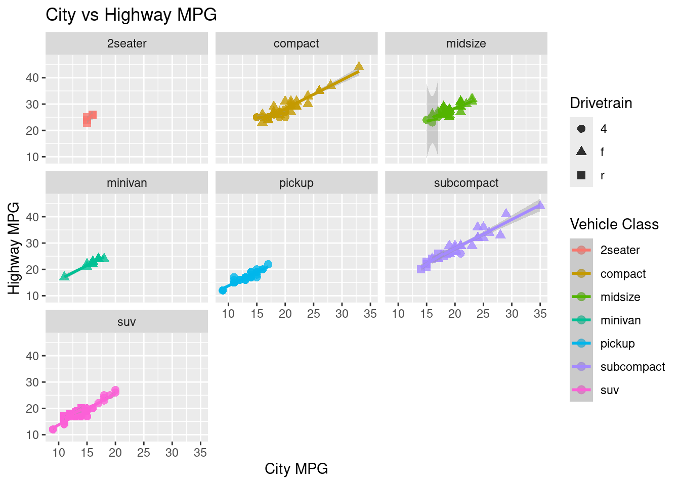 facet_wrap(): Creates individual plots and puts it into one graphic.