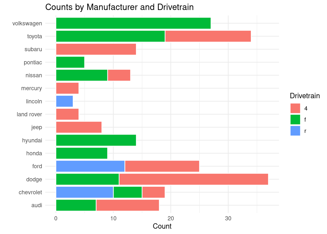 Use labs(), theme(), and coord_flip() to improve clarity and readability.