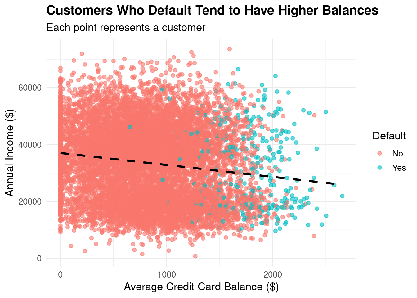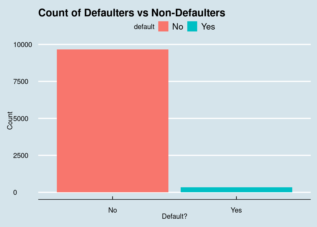 library(ISLR2)library(tidyverse)cc_data <- Default # this data comes from the ISLR2 packagelibrary(skimr)skim(cc_data)